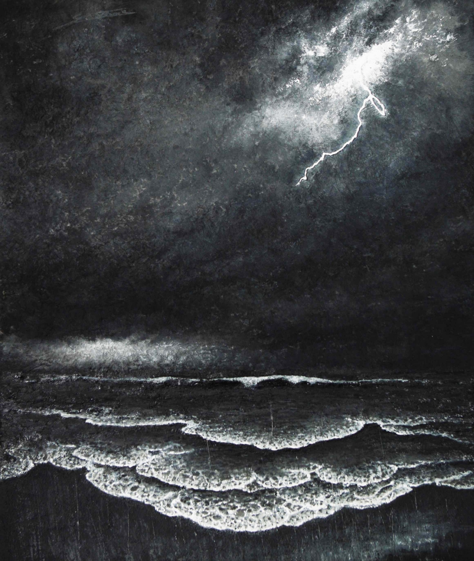 Plâtre, eau artificielle, sable, coton, pigments purs et peinture émail glycérophtalique sur toile.