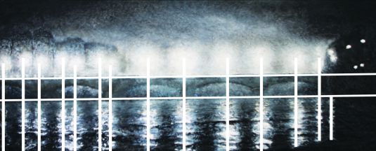 Cette peinture est en noir et blanc. Elle est de format panoramique, utilisé ici pour la première fois. Elle mesure 95cm de long pour 38cm de hauteur.