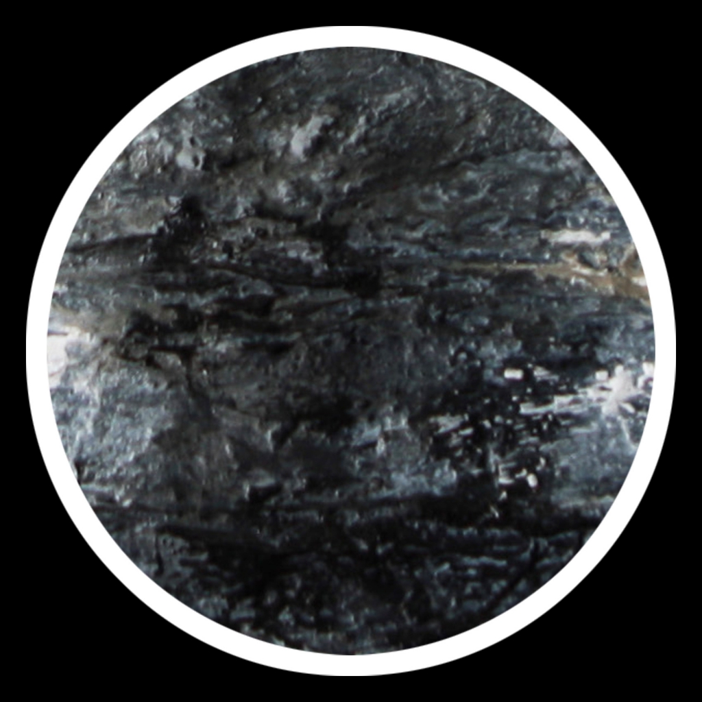 Le papier aluminium a été travaillé en restituant les mouvements de l'eau, puis recouvert d’un mélange de pigments purs et d’eau artificielle.